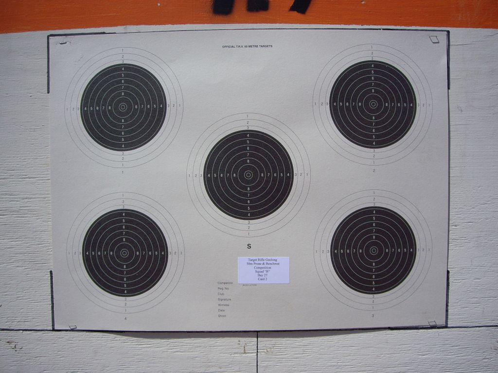 In Positional shooting only the 50m card is used. A competitor will fire only 20 competition shots onto this card, using the middle target for sighting in the rifle. If shooting a 3x40 match then two cards are shot in each position.