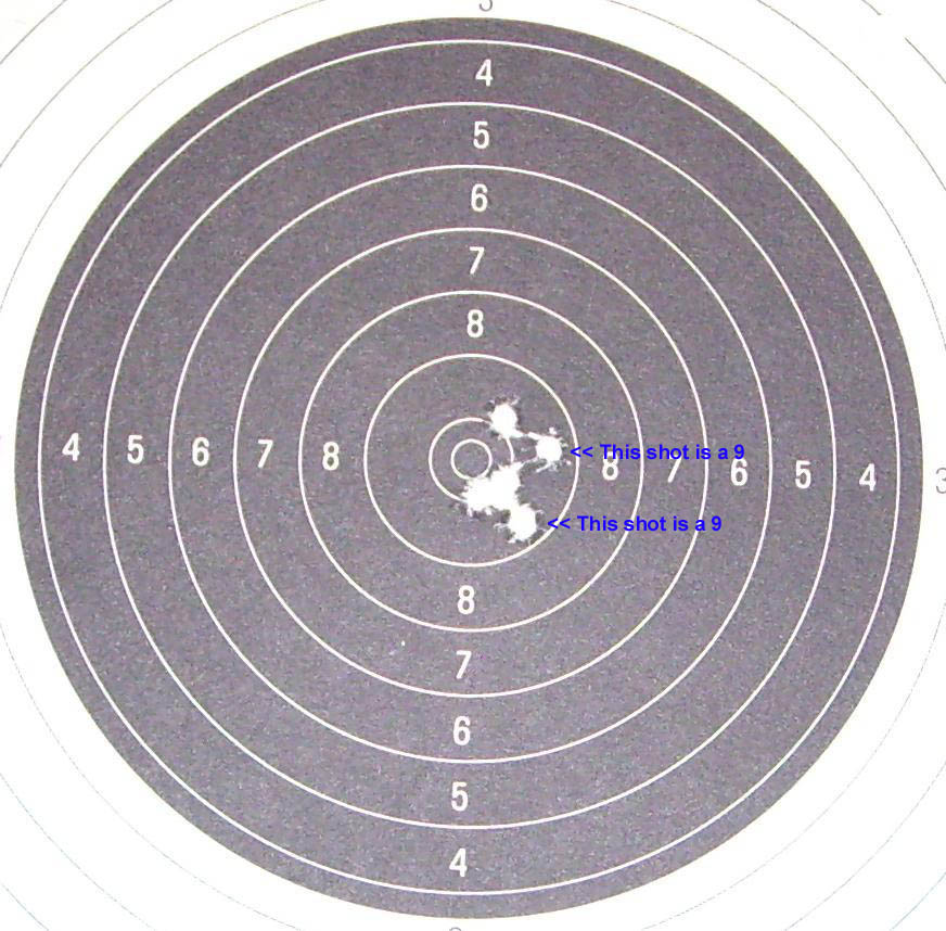 Each competition shot fired can score a maximum of 10 points. Each target has a inner ten (or in old terminology a "Bulls Eye", to score a 10 the bullet has to touch or clip this inner ten. But if a shooter has a perfect shot and eliminates the inner ten then they score extra, the total number of points and inner tens will decide the final score for the shooter.